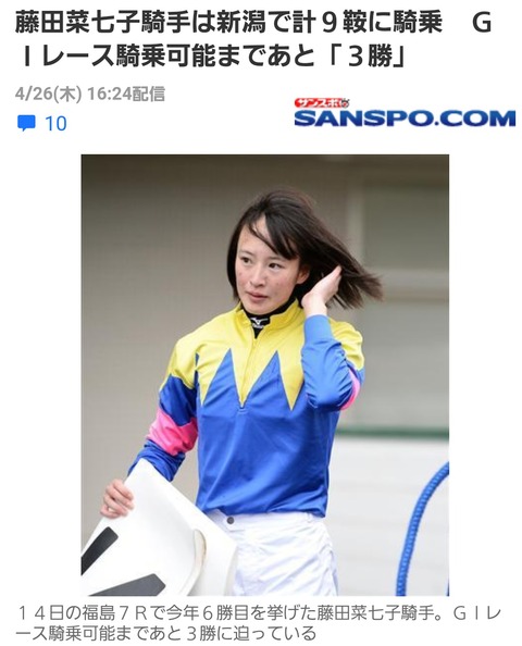 【画像あり】藤田菜七子さん、ヤバいwwwwwwwwwwww
